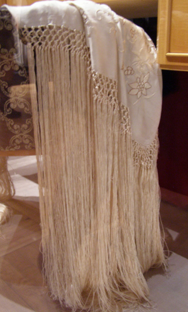 Там есть и шали. Шёлковые, вышитые. Это кантонские шали или рояльные. В свободное от "работы" (а в них очень модно было ходить в 20-е годы прошлого века в кабаре) они украшали рояли.