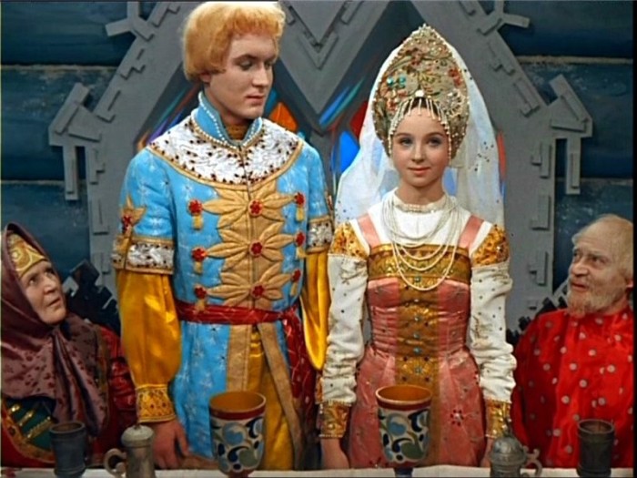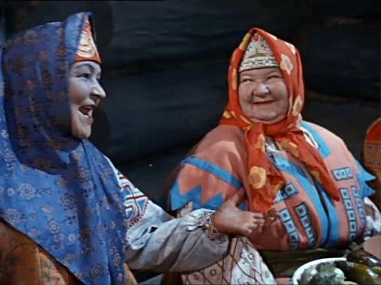 А что за платок на Марфушеньке из "Морозко", когда она под елью сидит? Надо же - какой облегающе-приталенный сарафан на Настеньке... я не думала, что такие сарафаны бывают - настоящее вечернее платье.