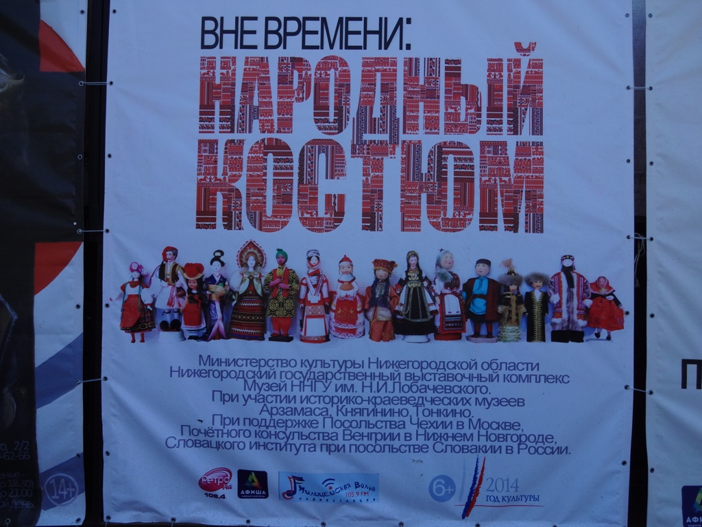 В Выставочном зале Нижнего Новгорода открылась выставка "Вне времени: народный костюм". Выставка занимает три комнаты. Экспонаты разные - от подлинных, до современной реконструкции. Помимо народного костюма Нижегородской губернии представлены костюмы из Венгрии, Чехии, Словакии.