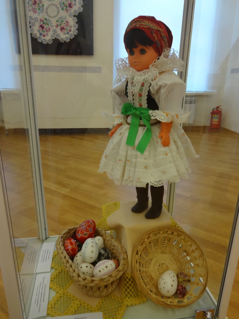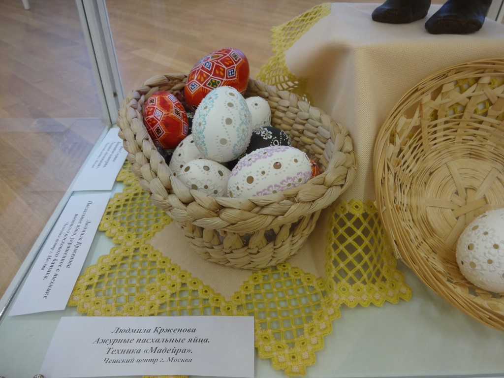 Пряничные фигурки из Чехии, куклы в национальных костюмах, ажурные пасхальные яйца "мадейра" среди экспонатов выставки.