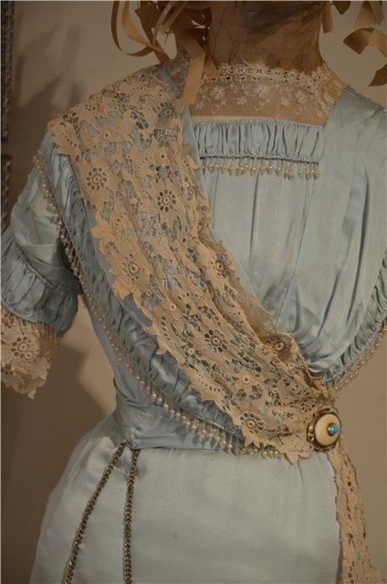 А я бы и сегодня непрочь надеть что-нибудь светленькое из показанного. По всей видимсти, это кисея и батист вышитый...