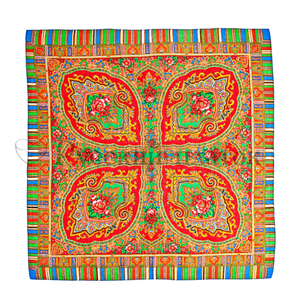 А вот без вспышки цвет не так передан. Кайма у платка совсем не белая. Она сероватая. А бахрома имеет зеленцу.