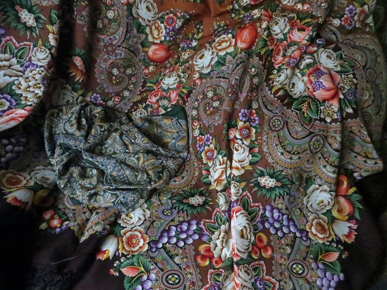 Да, еще подошел не-павловопосадский шелковый однотонный платок зеленого с коричневинкою цвета, но это не интересно.