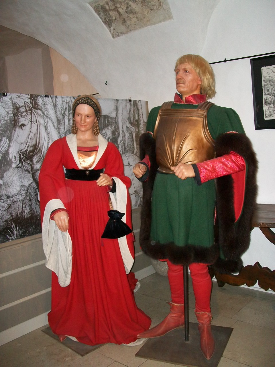 в средневековье мужская одежда была ярких цветов (это восковые фигуры в таллиннской ратуше)