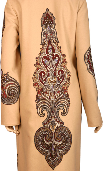 Лично бы я не отказалась от пальтишка. Но,такое очень дорого стоит,а сама я,увы,не мастерица. А что касается носки платков,как таковых,то и здесь есть нюансы. Большие шали приходится постоянно закалывать,какую-бы тонкую иголочку не подобрал,все равно остаются маленькие,но дырочки,я это уже проверила. Пусть каждый распоряжается шалью так,как он захочет:моделирует,режет,фантазирует,а кто-то пусть на полочку складывает или на стены развешивает. Но,к нарядам с ликами Святых на шалях отношусь крайне отрицательно.