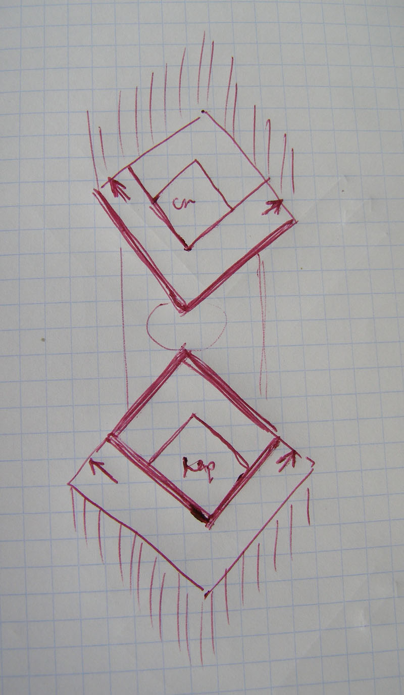 Там, где стрелки на рисунке - идёт сплошная полоса - это место бокового якобы шва. Рукава выкраиваются из полосы и укладываются по фигуре, одновременно давая свободу на выпуклость груди (вместо вытачек).