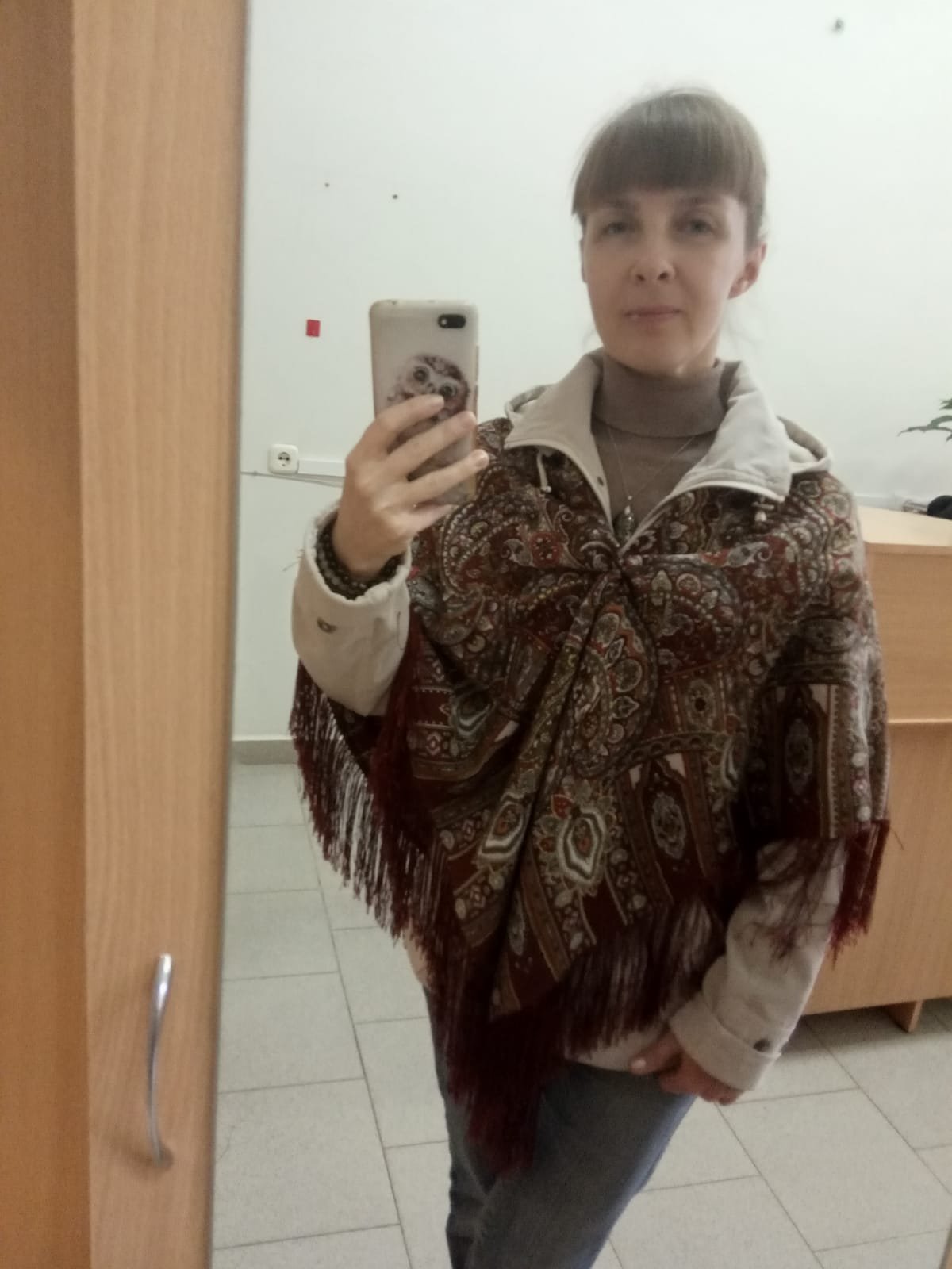 Ношу платки/шали и слюнявчиком, и в накидку, и бог весть как и даже не думаю, что как бабушка. Прохожие головы сворачивают. "Своих" почти не вижу. А если вижу, так улыбаюсь им на все 32 зуба:)