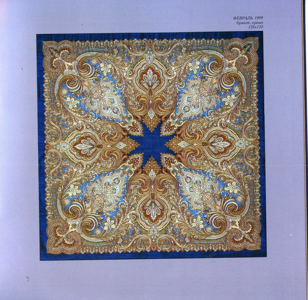 Последняя страничка с кроком платка "Над серебряной водой", 1999 г., бумага, гуашь, 74х74