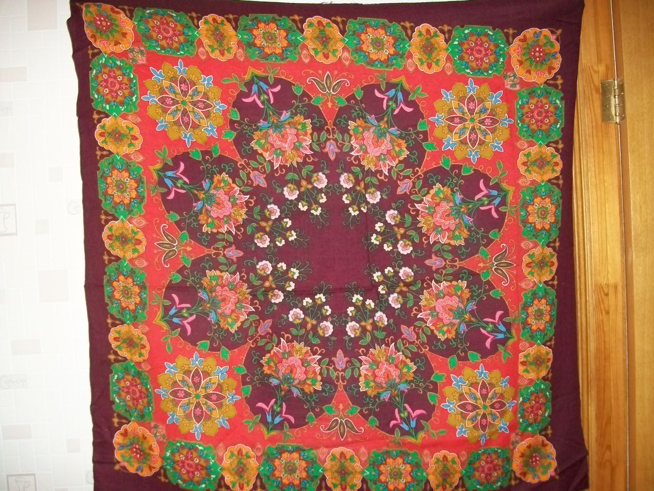 И совершенно дивный платок 125х125. Есть в нашей базе как неопознанный. С цветами хлопка. Был подарен подруге в конце 70х годов теперь уже прошлого века.