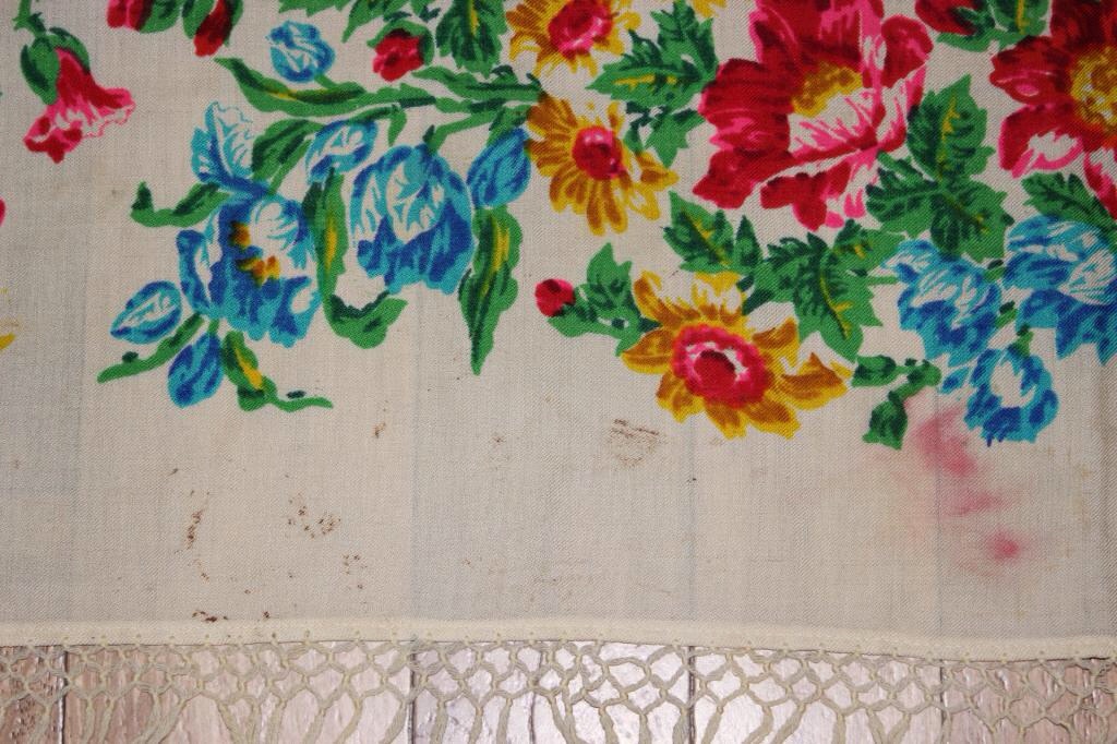 Про вышивку. В книгах, по-моему, есть о том, что на ППМ практиковали тамбурную вышивку на платках. А Екатерина Регунова начинала на ППМ как художник по вышивке (придумывала рисунки). Так что, с этикеткой такой платок просто чудо.