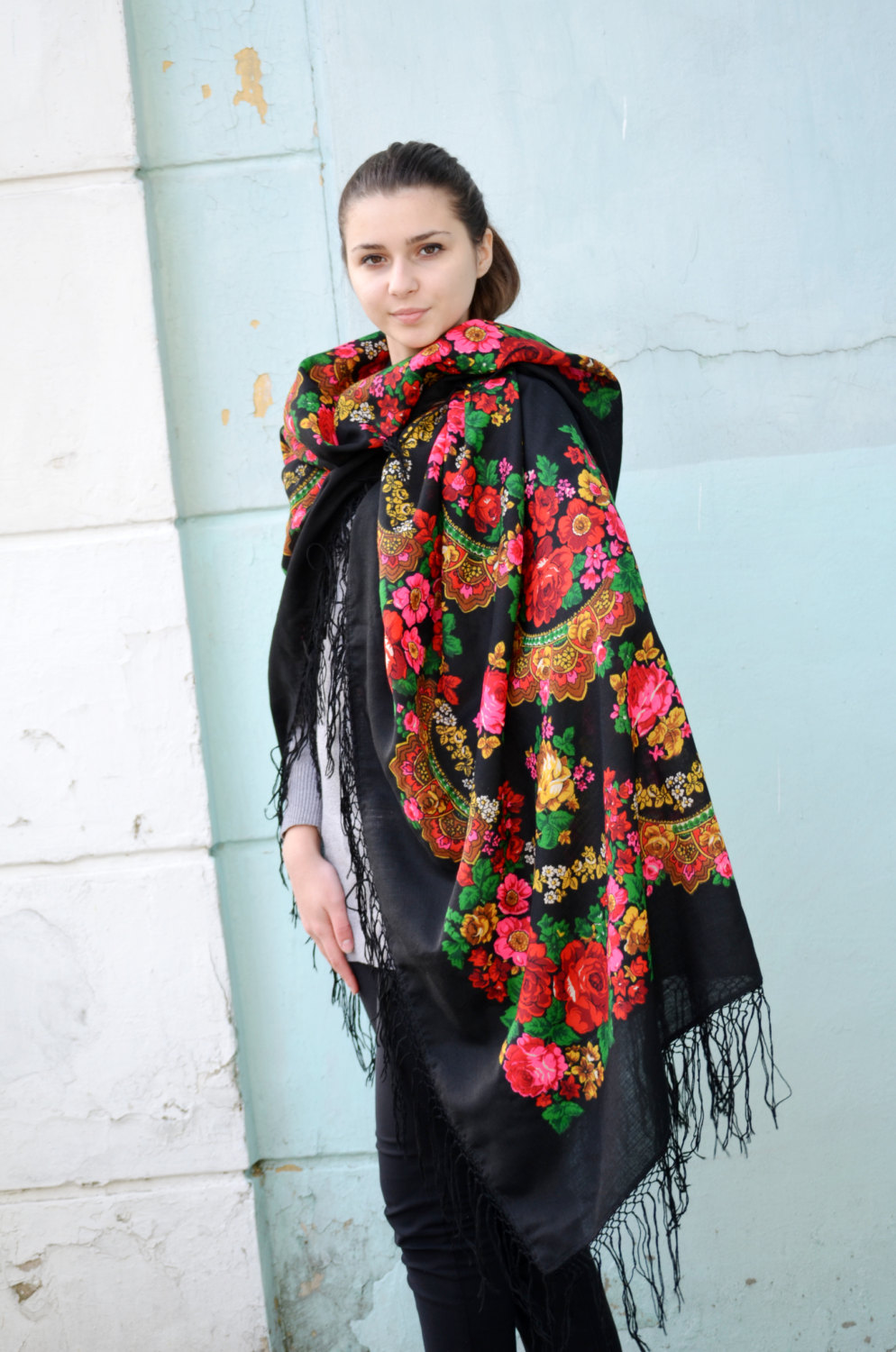 Обе шали напечатана на ткани с просновками.