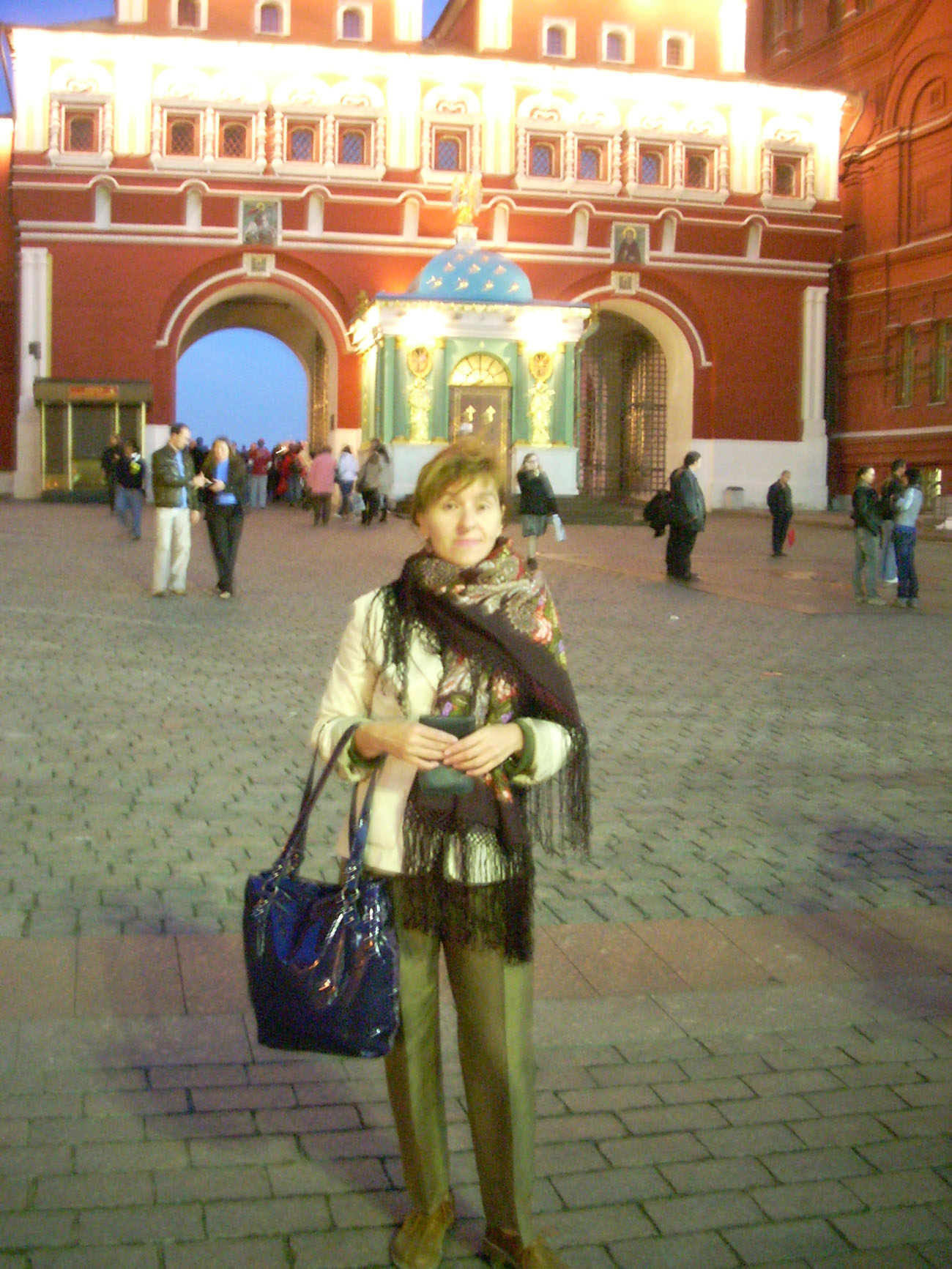 Здравствуйте, дорогие форумчанки. Я очень люблю наш форум, рада каждому показу и с удовольствием рассматриваю и платочек и образ в целом. Пишу комментарии иногда. А сама не показалась ни разу. Вот исправляю эту ошибку, представиться, так сказать… Немного попутешествовала, ну места узнаваемые. Вечер, вспышка и цвета немного искажены.