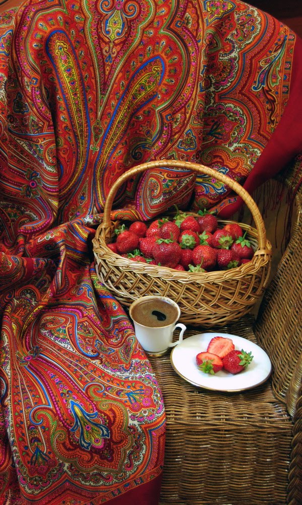 (Кликните, чтобы почитать оффтопик)... Фотографировала в июне, в сезон клубники, но носить шаль не смогла, не подружились мы