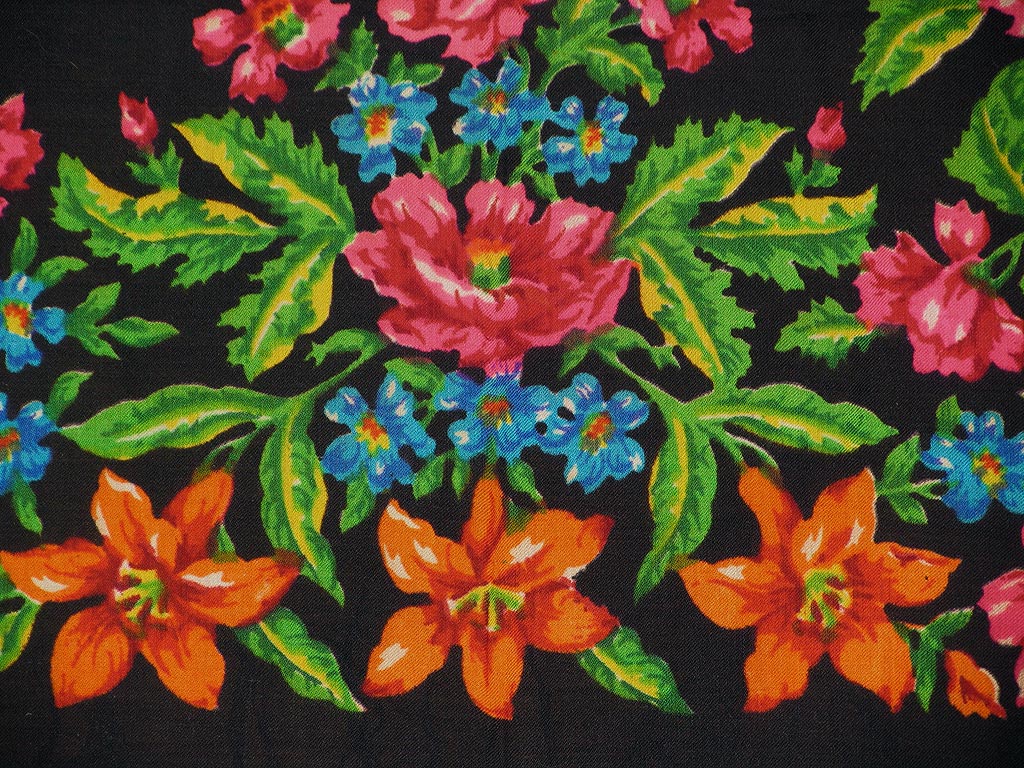 Состояние шали почти хорошее - не едена молью, не стирана (кажется, и не ношена), свежие яркие краски, но по углам пятна: видимо, на сложенную вчетверо шаль протекла вода, и рисунок "поплыл". Но для меня гланое, что можно рассмотреть, как некоторое время назад печатали шали.