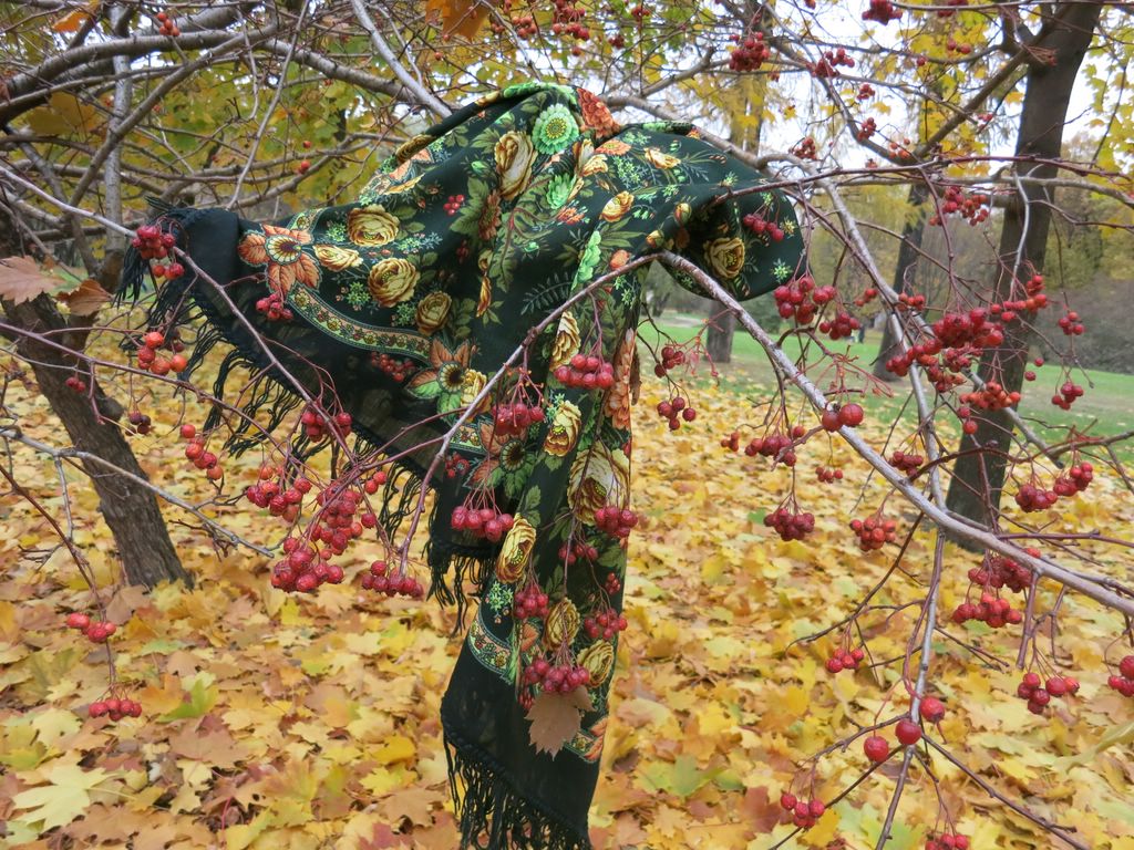Вот такой платочек теперь есть в коллекции. С Блошиного рынка в Бауманском саду. Не нашла его в БС. Цвета реалистичнее на фото с манекеном.