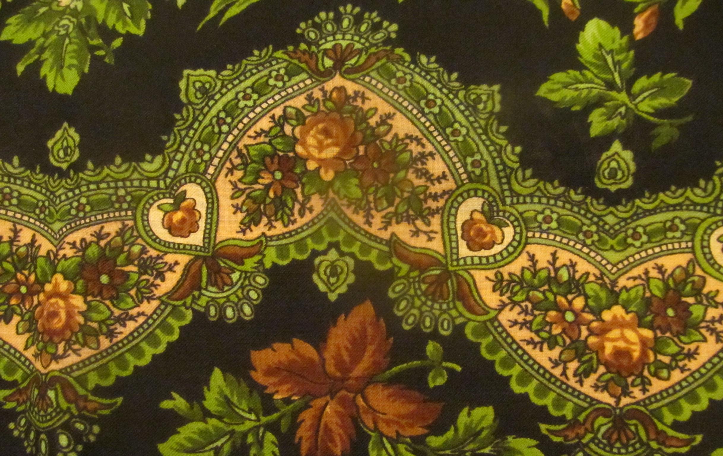 Очень нравятся такие черно-зеленые с рыжими цветочками платки,но мне не идут(Любуюсь на других.