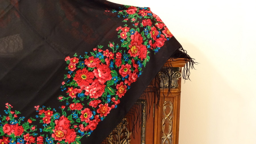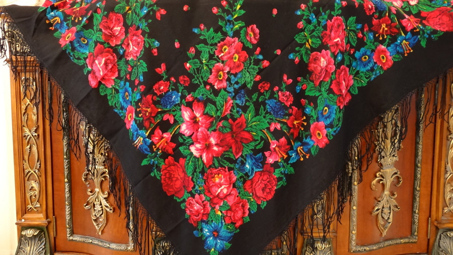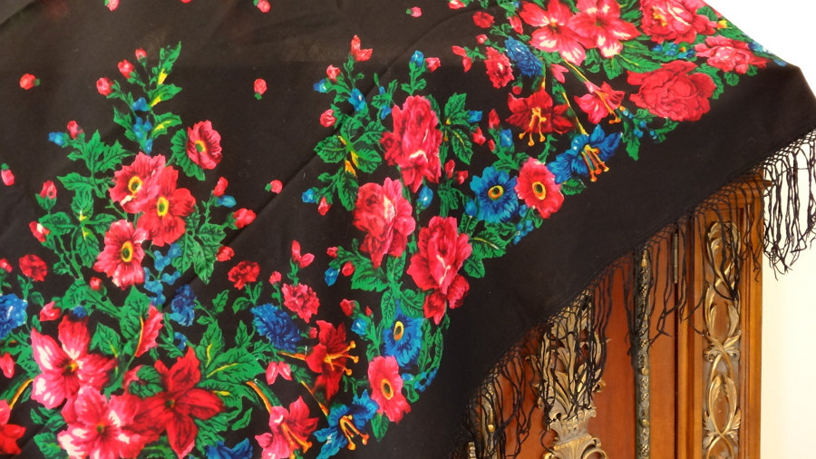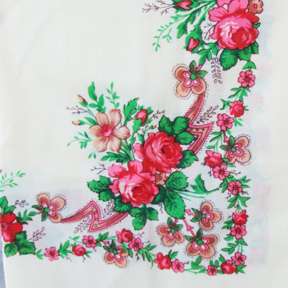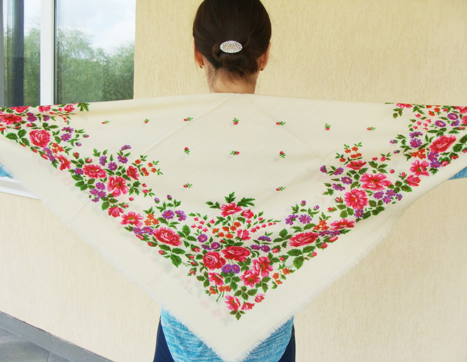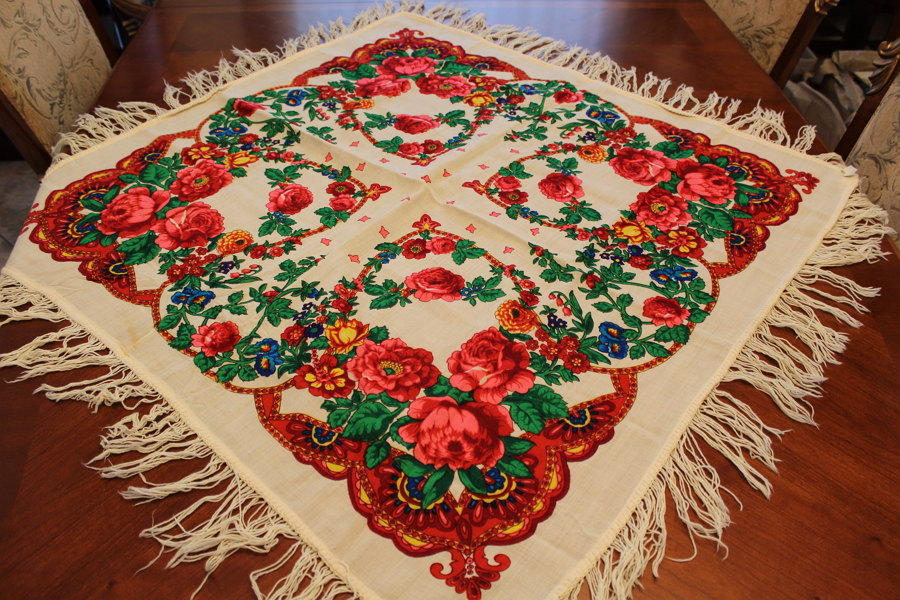 Этикетка отсутствует, увы. Да и средник "ситцевый", т. е нет привычного для украинских платочков "хоровода" штампочек, часто двух разных цветов. Думала-думала... Всё-таки павловопосадский платок