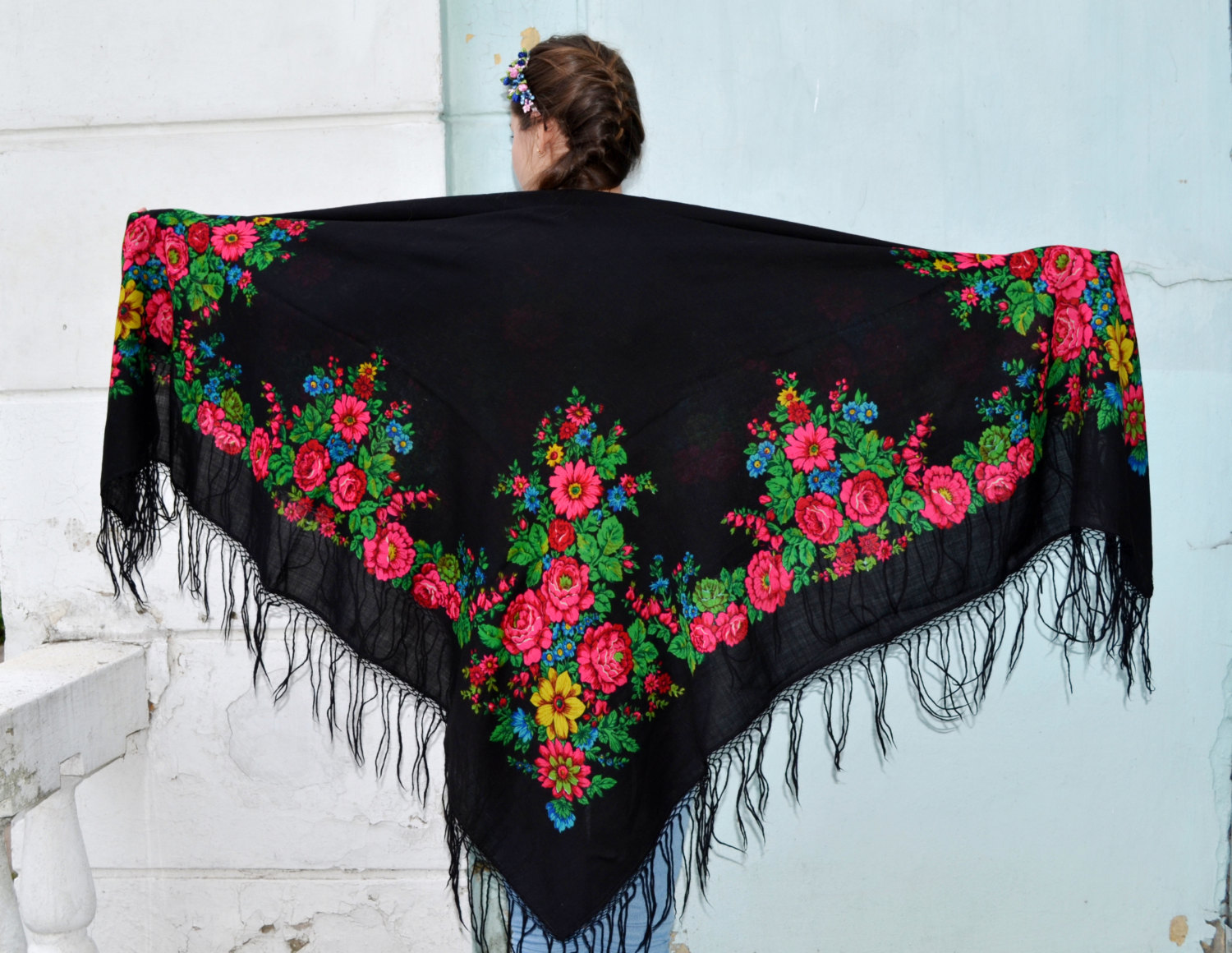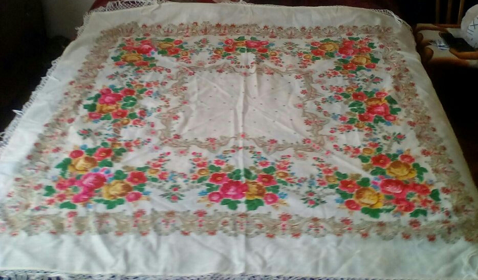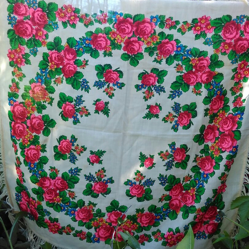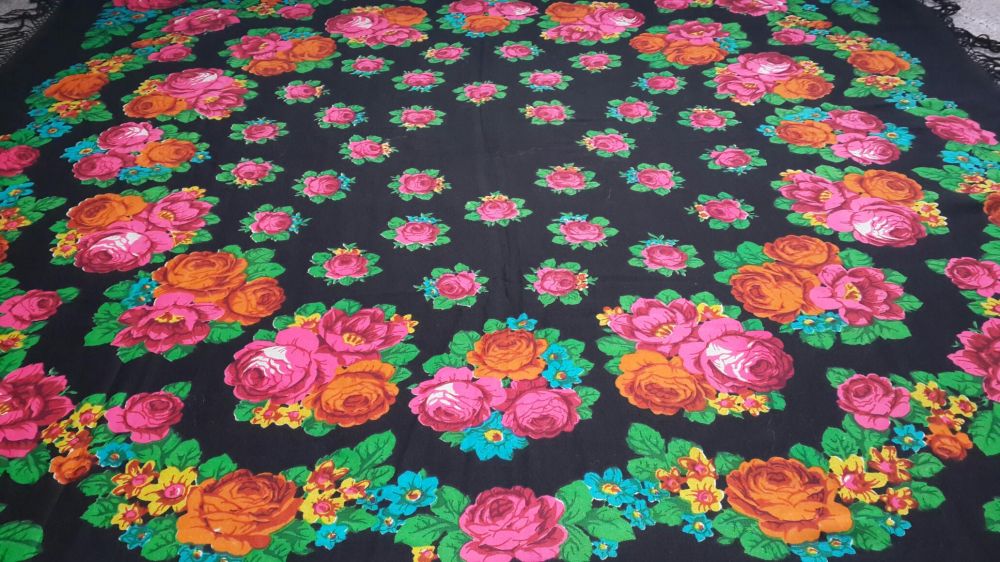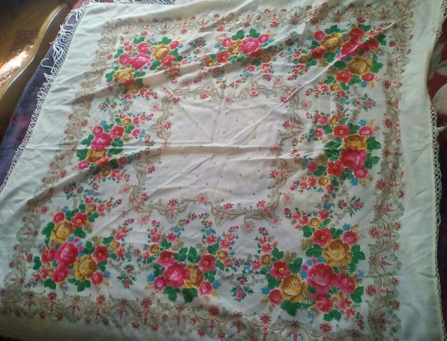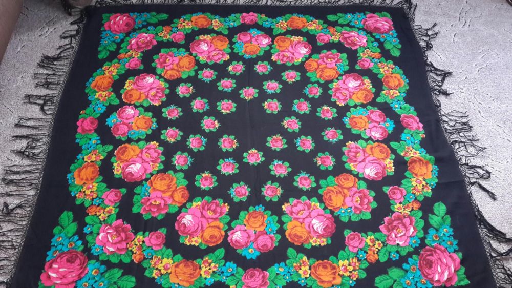 . Мне раньше попадались платки со штампом только на русском языке и датировались они 1991-1992 годами, а тут непонятно что за цифры, не год выпуска и не год основания Мануфактуры, вот они меня и смутили. А платочек самый настоящий, на плотненькой шерсти и бахрома родная.