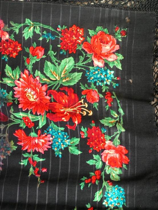 Дополнительная информация от будущей хозяйки платка - платку в районе ста лет, он из города Солигалич, Костромской области, принадлежал какой-то богатой даме.