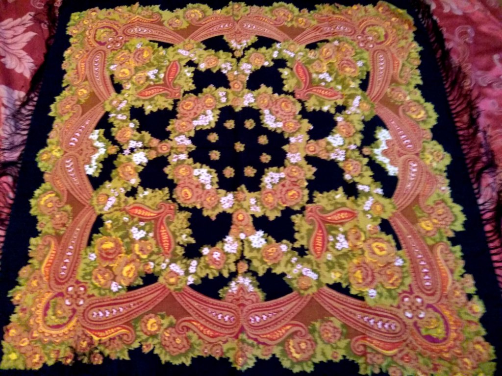 настроена расставаться с этим платком, состояние очень хорошее, размер 95 * 95 см, не могли вы мне помогать ориентироваться по цене, спасибо