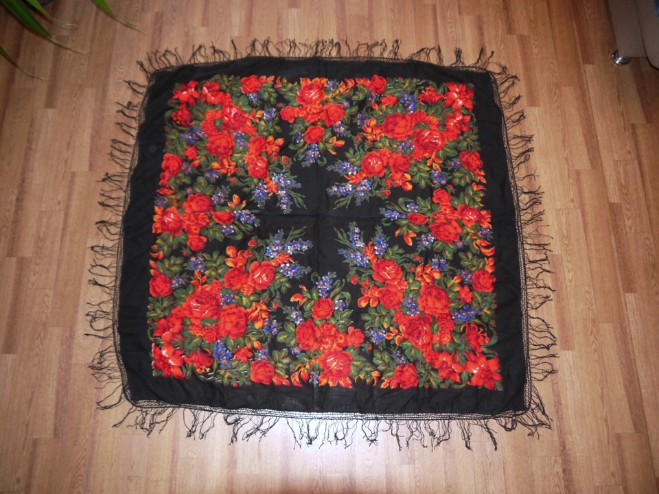 Винтажные хлопковые в случае качественной печати тоже очень хорошо смотрятся. И очень приятны в носке. Нашла ещё одну шаль в своём домашнем архиве виртуальных фотографий