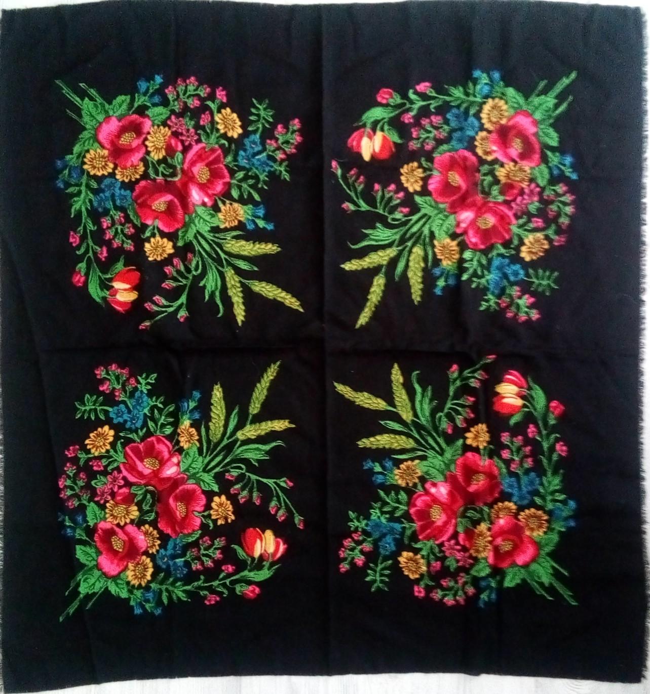 И в продолжение просьбы выше еще платочки. Черным полем с колосками не кажется ППП, но интересно, кому-нибудь попадался подобный рисунок?
