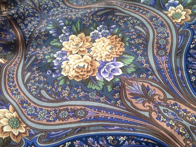 Что касается колористических нюансов, к сожалению, шали ранних выпусков у меня нет, поэтому сравнить не могу. На мой непрофессиональный взгляд, есть определенные различия в оттенках по сравнению с фотографиями, которые имеются у нас в архиве и теми фото, что любезно предоставила в теме "Коллекционируем понемногу..." Натик