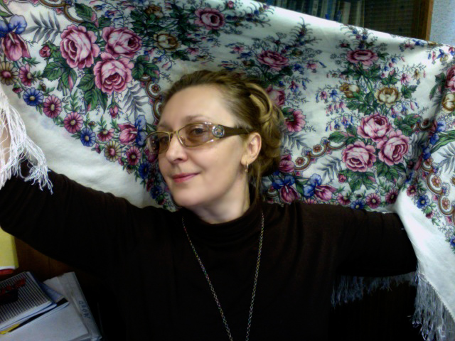 Оксана!!! Я в обмороке.. Мало того, что серыи Сад платок моеи мечты, так он еще просто безумно Вам идет!!!! Вы просто красавица! ^% Вам идет все, но Сад.. Аристократичная.. элегантная.. Ах..ах..
