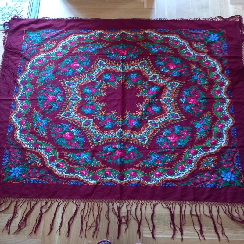 Уважаемые знатоки. Помогите опознать мои сокровища. Буду признательна за любые комментарии и вопросы. Не уверена, павловопосадские ли это платки, но очень похожи.