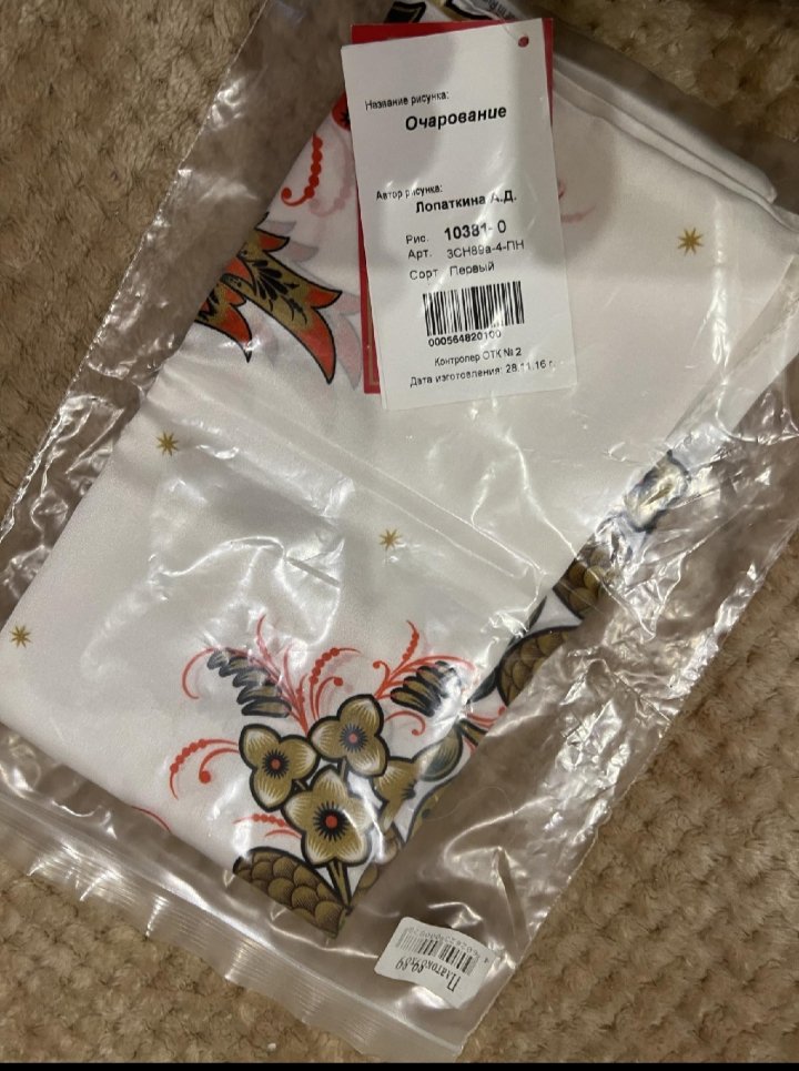 Кстати, о птичках. Касательно сообщения redcat от 23 марта. Вот нашла на просторах Сети фото платка с этикеткой по заказу ЗАО Хохломская роспись.