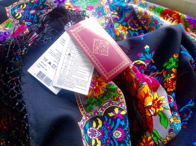 Еще что удивительно, ткань не тонкая, как на всех новых шаляхИ этикетка, не бежевая с цветочками, а темно вишневая, как раньше была. Вот я и думаю, а новая ли это печать?
