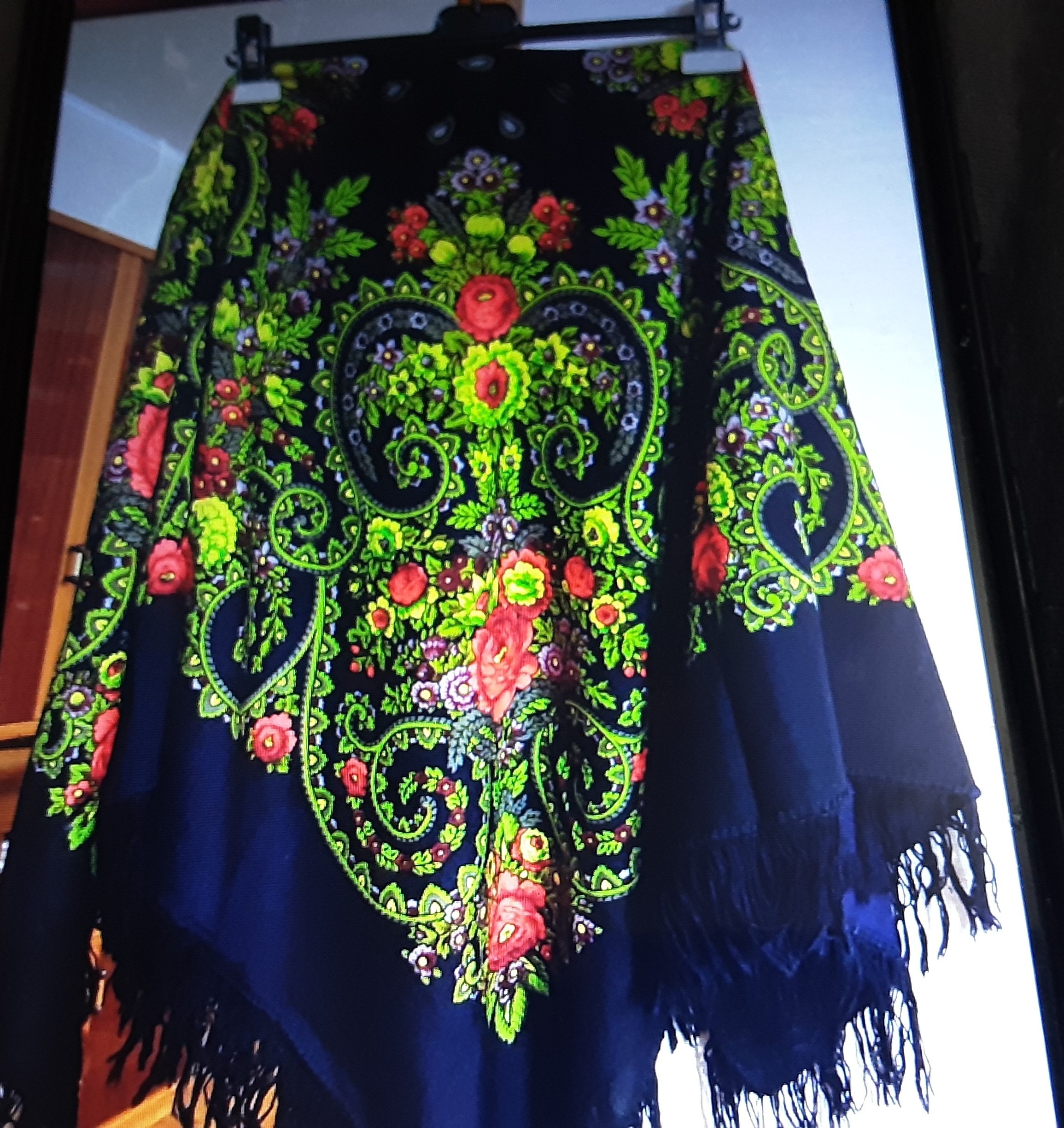 Приобрела на авито вот такую прелесть 1994 г.в. , 95х95 см, 90% шерсть, 10% нейлон. Перерыла весь форум, так и не нашла, что это за персонаж. Помогите, пожалуйста, может, я плохо искала? Есть ли у этого платка название, кто автор?