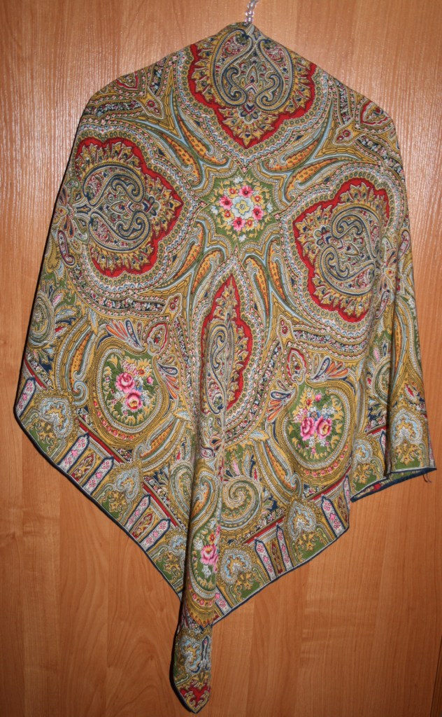 Относительно показанной Вами шали (и многочисленных ее сестер) я тоже не сомневаюсь. Но "дело" в архив сдавать все же не спешу. Пару раз я видела именно этот рисунок, но с другой прорисовкой роз: там они казались вполне живыми. Шали по виду были "в летах" (это японские - вечные молодки), с характерной для ПП бахромой. Я по-прежнему до конца не исключаю возможности того, что родина рисунка - Павловский Посад.