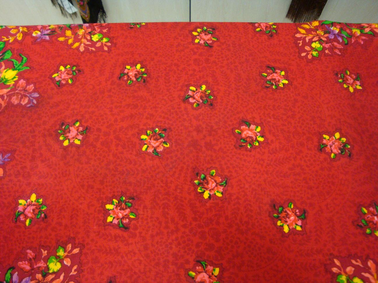 Конечно, Лидия Шаховская.Набойка ручная, очень живописная.Середина заполнена рисунком на пол-тона темнее, чем фон.Поначалу думалось, что как и в скатерти "Урожайная", это будут просто пятнышки, но оказалось, что там-то и скрыт главный смысл.При рассмотрении проявились колосья пшеницы, гроздья винограда с листиками, какие-то ягодки и стилизованная надпись ВСХВ.По-моему, в 1954 году,после войны, открвлась Всесоюзная Сельскохозяйственная Выставка.Видимо, именно к этому событию был создан сей шедевр.Ткань очень мякгая и тонкая, удивительно отличается от современной.(В лучшую сторону).