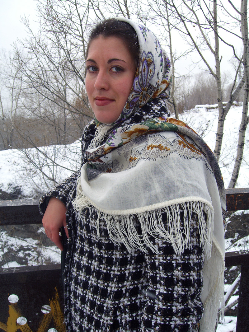 Но кроме этого ваши фото, а тем паче фото выставленные на конкурс, дают повод позавидовать долгой осени в ваших краях. В Новокузнецке - уже 3 неделю - Зима. Снег, метели и морозы. Хочется показаться в платочке на фоне зимнего пейзажа. В этой тоненькой распрдажной Отраде я ходила первые дни как только выпал снег.