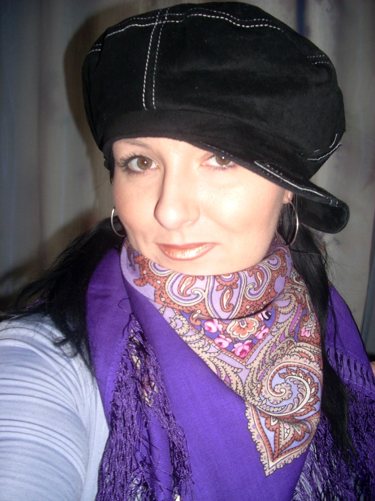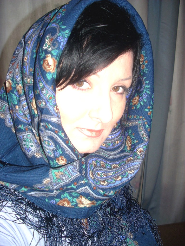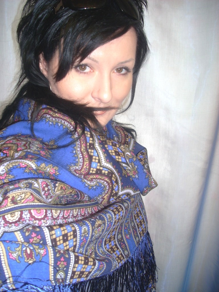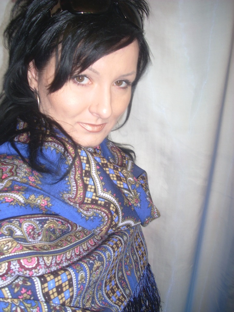 Martisha Спасибо Вам за яркие показы. Очень на Вас понравилась Поэзия востока. Тонкий рисунок на платке делает Ваш образ нежным, хрустальо тонким. Понравилась Цыганка Аза. Есть она у меня, но до сих пор грызут сомнения - не темновата ли? А вот на Вас просто отлично. Не смотря на радикально темный цвет волос, темная шаль Вас не "убивает". С Журавушкой же произошел пародокс: светлый, нежный, мною горячо любимый платочек, как мне показалось, смотрится на Вас чужим. Как будто он не из Вашего гардероба, а был примерян по случаю.