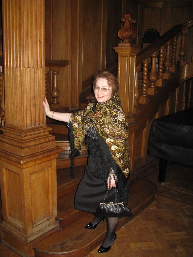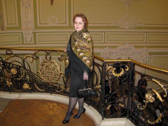 Пока шли по сырому, но весеннему Невскому "встретила" на молоденьких девушках бордовый Лучезарный, и голубую шелковую Восточную сказку...А в зале - полушалочек- Серенада.