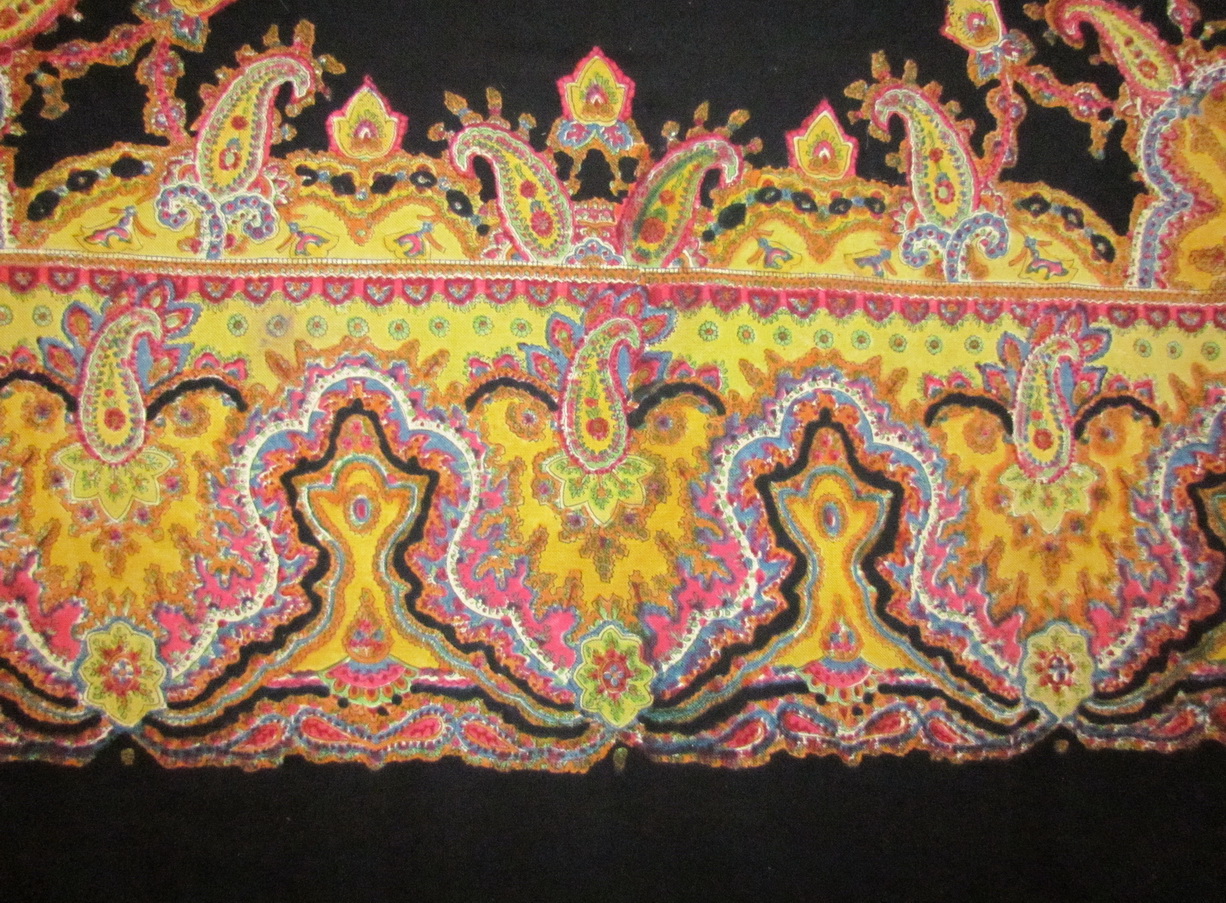 Шаль очень солнечная, смотрится по-восточному. На манекене - вообще глаз не отвесть. Фотки будут еще лучше. Стоит отметить глубокий бархатный черный фон. Плотную и мягкую текстуру - так и липнет к плечам и рукам. Смотрится очень даже актуально в носке. Это все благодаря бережному хранению прежней уже старенькой хозяйки, которая, по словам внучки, тряслась над этой своей реликвией и почти не доставала из заветного сундука. Ну и конечно же такая красавица-шаль достойна новой плетеной бахромы, чем и займусь в ближайшее время.