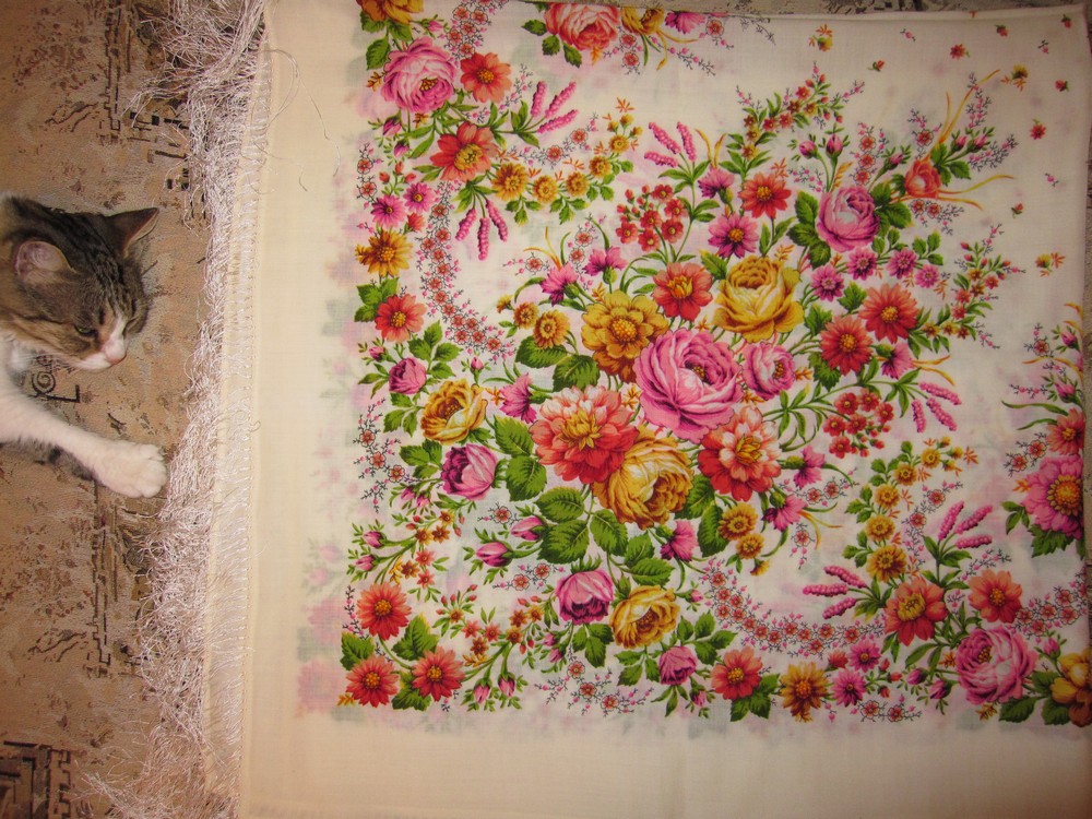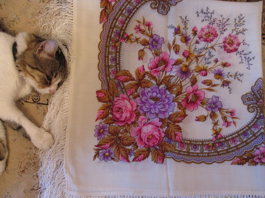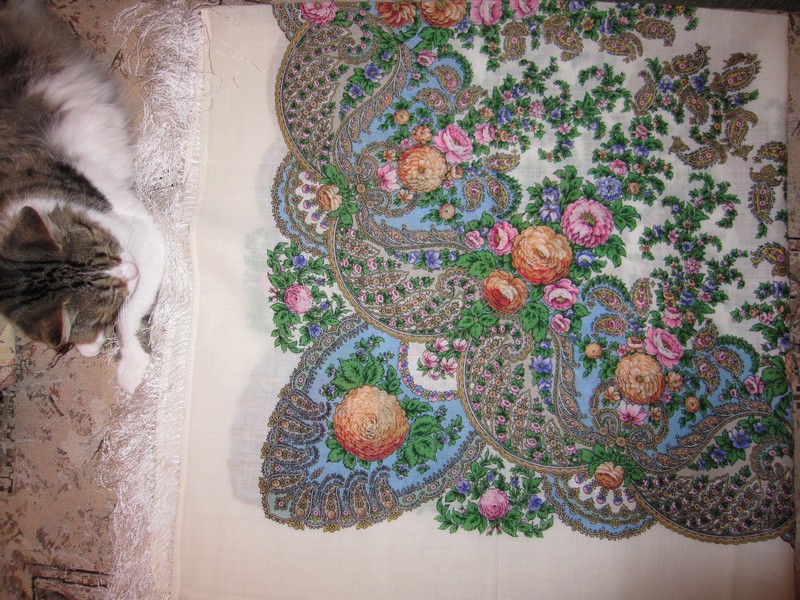 Белопольных платков ППМ выпускает не очень много, но они есть всех размеров. Те, которые мне особенно понравились - я купила и показываю.
