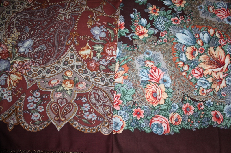 Сравнение платка Цветочная симфония-17 с Княжеским-17 и Миндаль-26.