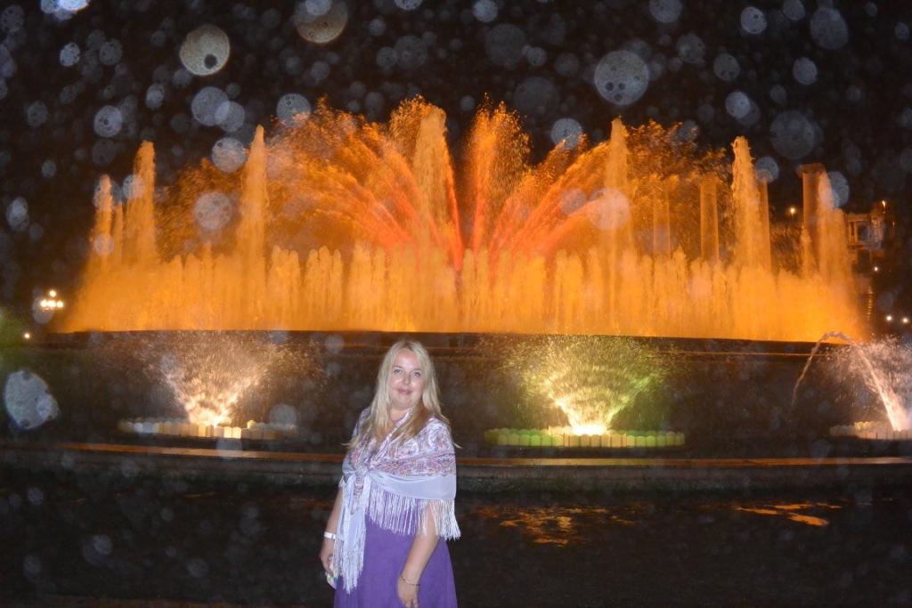 Брызги от поющего фонтана в Барселоне.