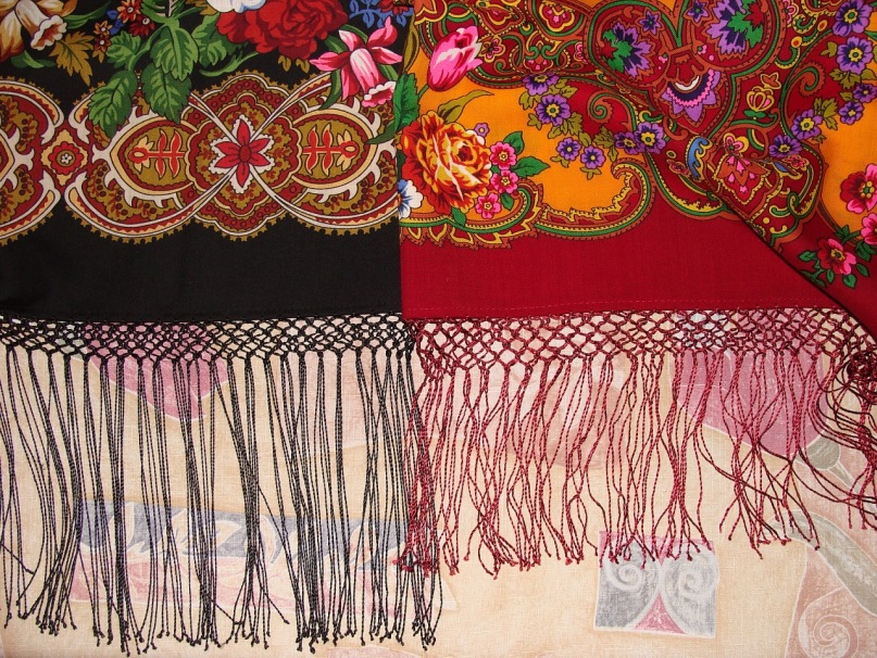 И потом, с укороченными кистями, мне гораздо больше нравится, как платок выглядит при драпировке - рисунок лучше виден!