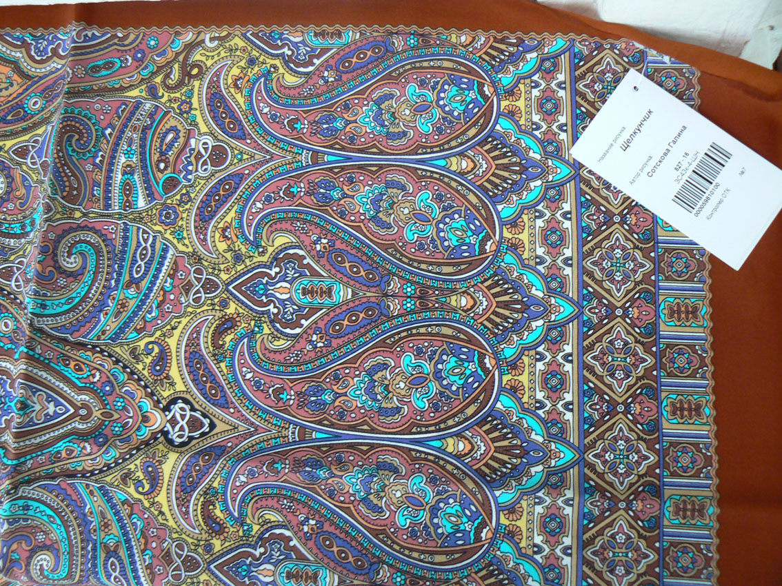 Мне тут опять надо было покупать подарки на работу, ну, как вы понимаете, Павловопосадские изделия, конечно, и в подарки "ушли" "Щелкунчик" Галины Сотсковой 827-16, он немного другой, поярче, чем синий у argon и "Парадиз" 1215-14 Елены Жуковой (уже демонстрировавшийся здесь).