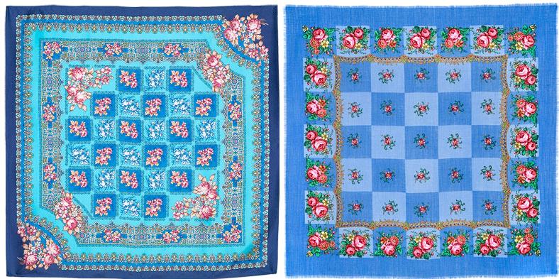 Сравнение колоритов платочка 52х52 см из крепдешина "Тополиный пух" (художник Фадеева В.)
