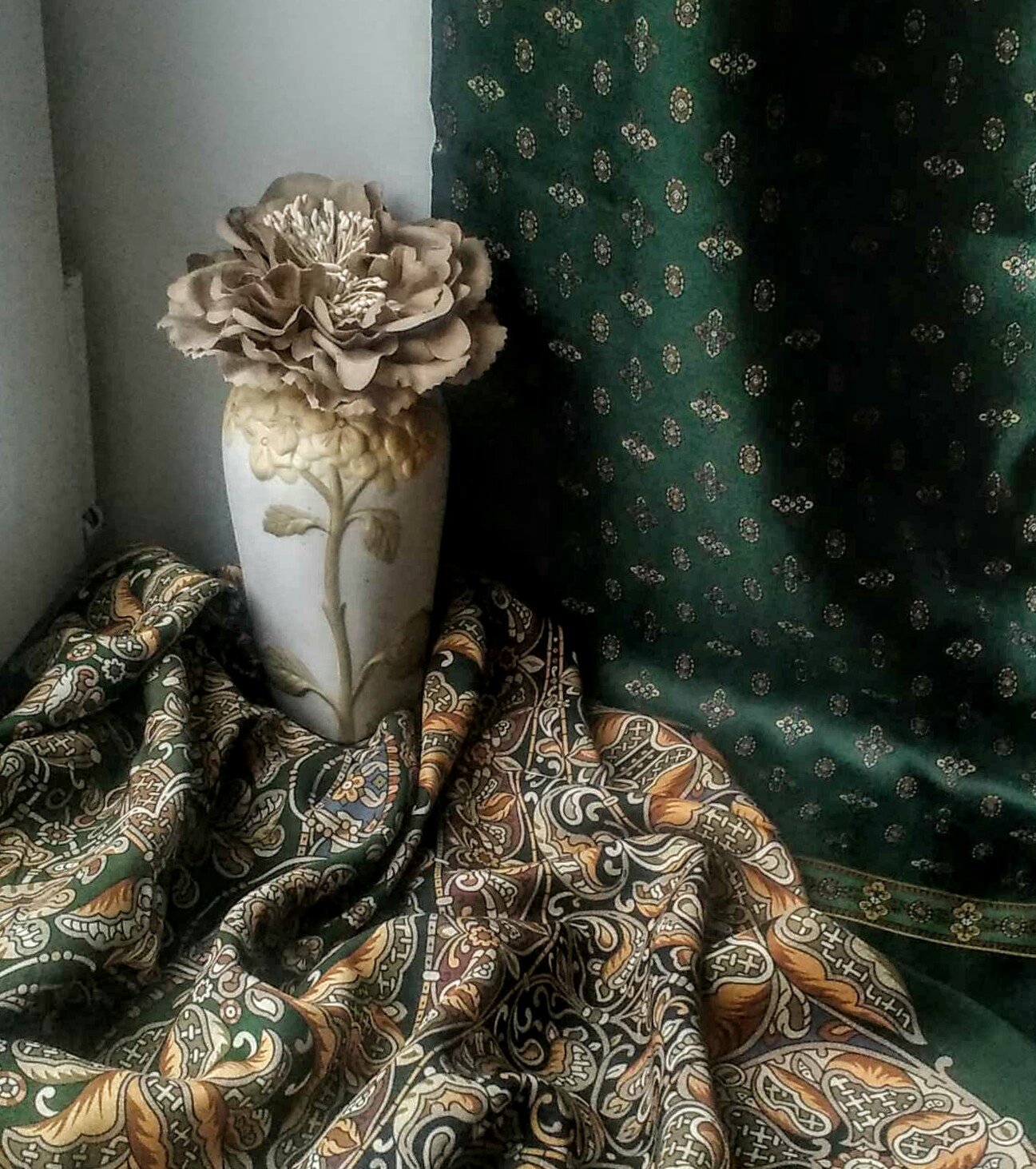Эта просто превосходная, да точно, холодный морской бутылочный, там и лиловый, там и медь. Я фанат этого рисунка, и поэтому конечно зависла над фотками Елены надолго.. Старый потрепанный, а новому молодому пупсику еще какую фору даст. Вот, сама и начала нюни распускать.... Но, так , или иначе, спасибо любимой мануфактуре, я буду рада любой печати новых колоритов БН. Мне легко согласиться, я фанат. Ну а недосягаемая звезда должна присутствовать тоже. Точно, что не все должно сбываться.