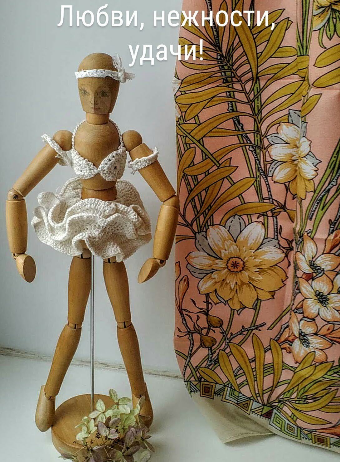 С Международным женским днём поздравляю вас вместе с моими девочками - толстушкой- физкультурницей- красавицей НЮшей и балериной из ИКЕА (балериной ее сделала я, связав ей балетный костюм крючком, жаль, головной убор и пуанты утрачены в процессе бурных детских игр). Шарфик Маков день 1. В. Фадеева