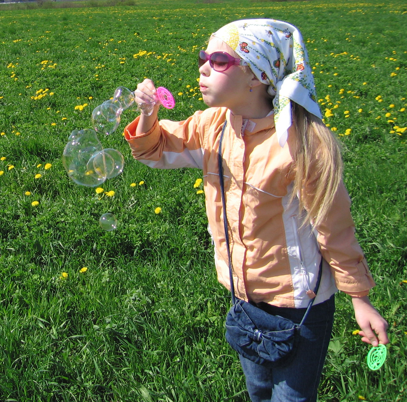 А фото Василисы, пускающей мыльные пузыри, просто очаровательное. И фон мой самый любимый - одуванчики на сочной зелени.