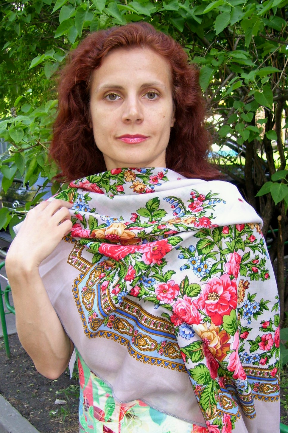 Пока есть свободная минутка... Этот платок ещё не показывали в "Примерочной". Пробегая по делам, вынув платок из сумки... Если (-2) колорит всё-таки сильно бледнит, как и (-7). А на (-7) и (-18) розы ОЧЕНЬ яркие - и подойдёт не каждой, то (-1) колорит универсален. Наверное, подойдёт практически всем. И без тяжёлой шерстяной бахромы платок только выигрывает, по-моему.