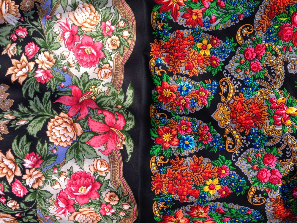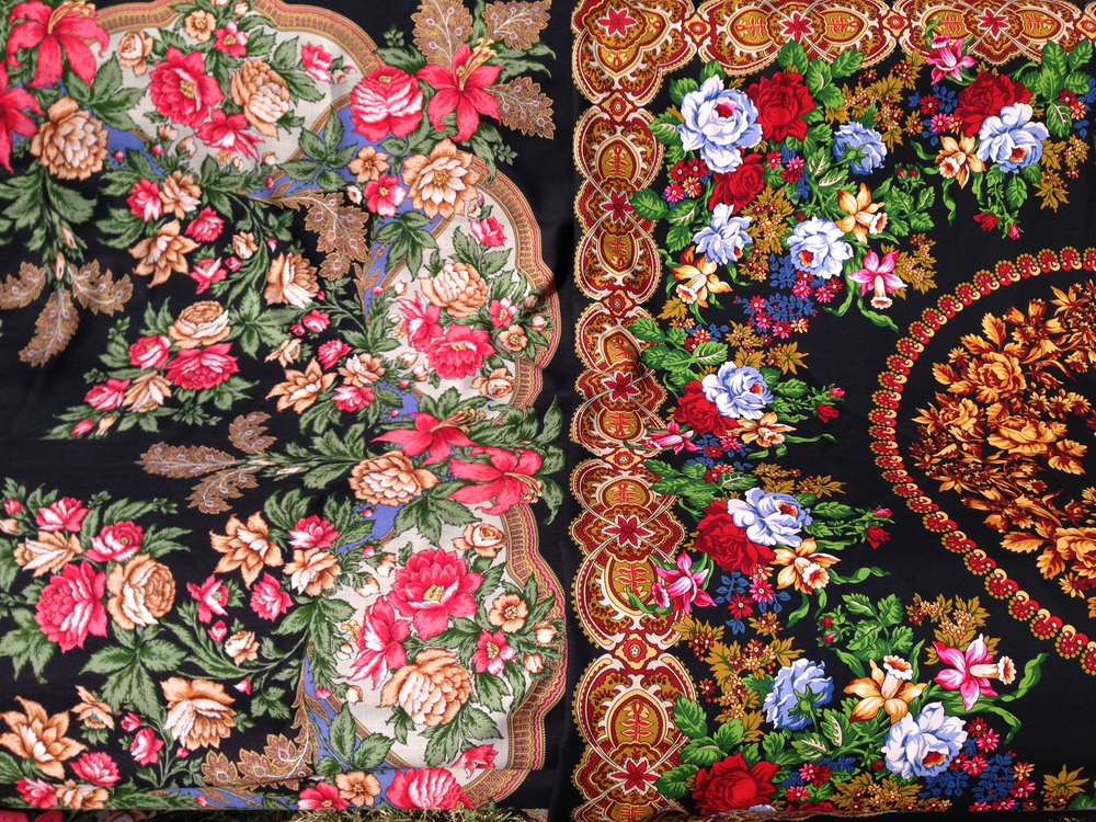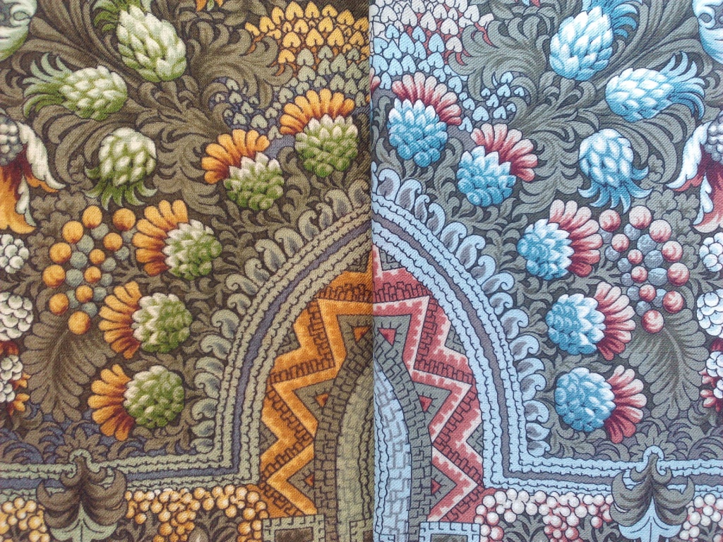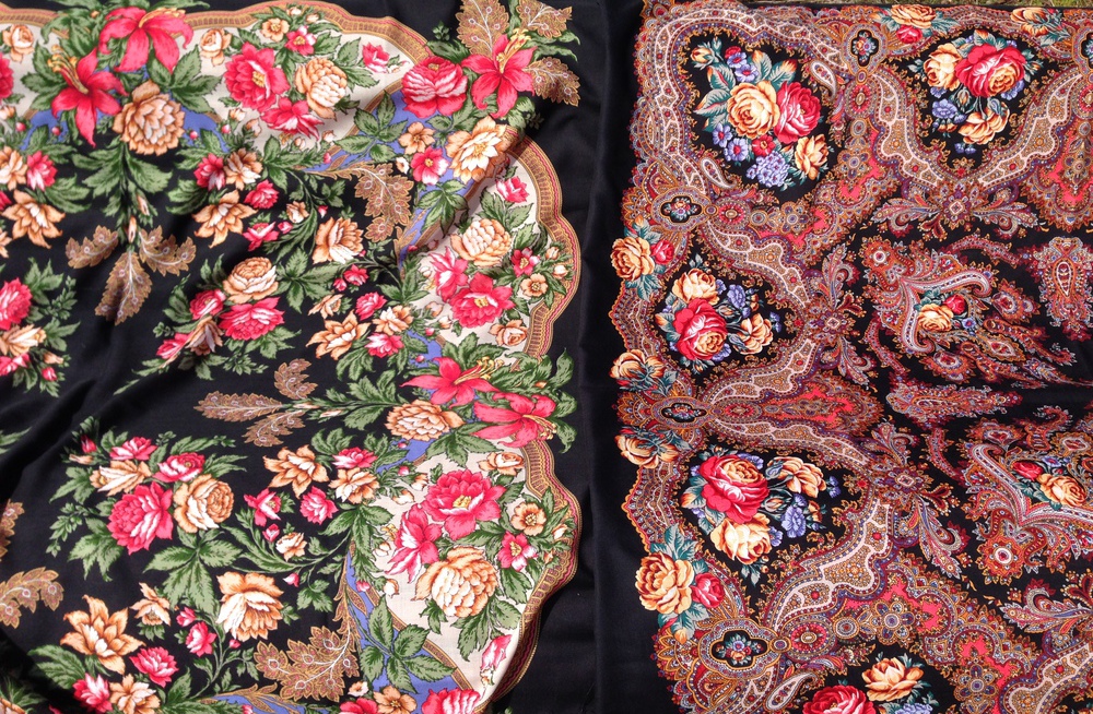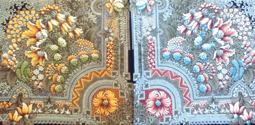 Хотя, опять же так наглядно видно, как по-разному воплощена павловопосадская классика черно-красная.