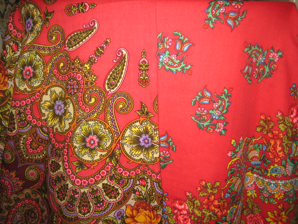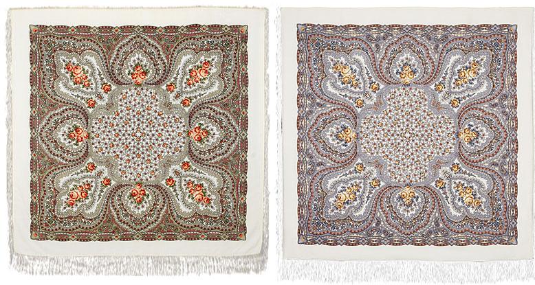 ), как будто между ними есть разница - это засчет золотисто-красноватой бахромы у ЦВ и зеленоватой у Рябинушки. Если подвернуть шали так, чтобы не было видно рисунка и каймы, то различия исчезают.
